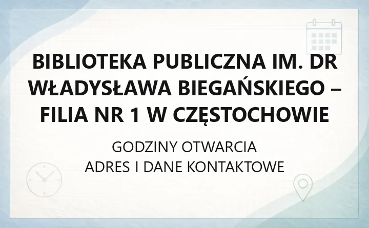 Biblioteka Publiczna im. dr Władysława Biegańskiego - Filia nr 1 w Częstochowie - kontakt, godziny, informacje
