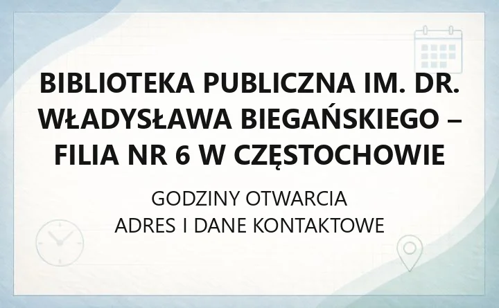 Biblioteka Publiczna im. dr. Władysława Biegańskiego - Filia nr 6 w Częstochowie - kontakt, godziny, informacje